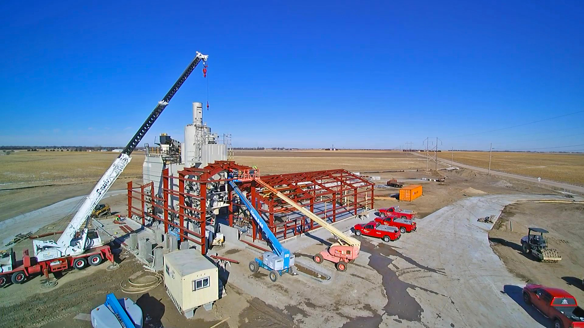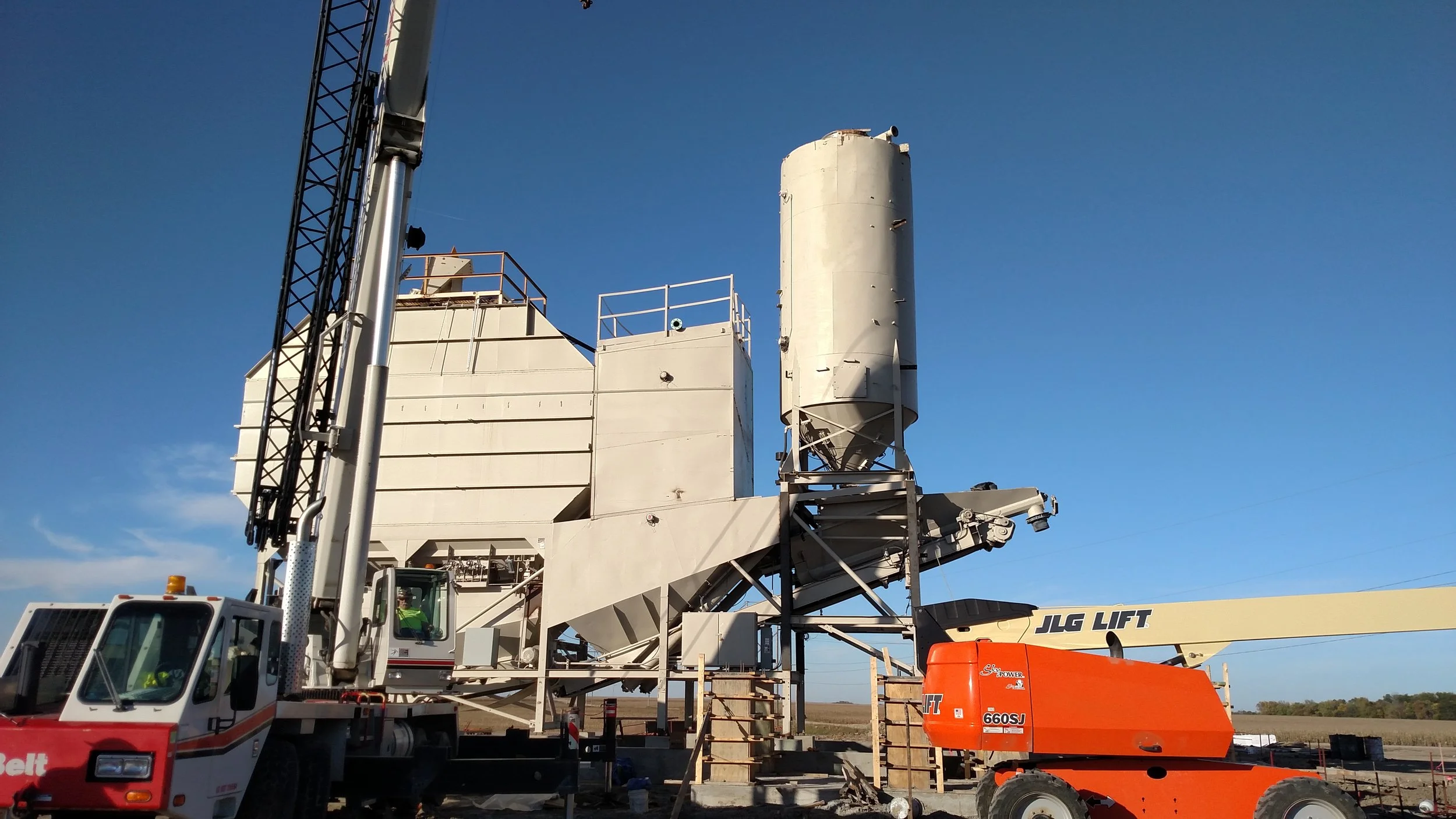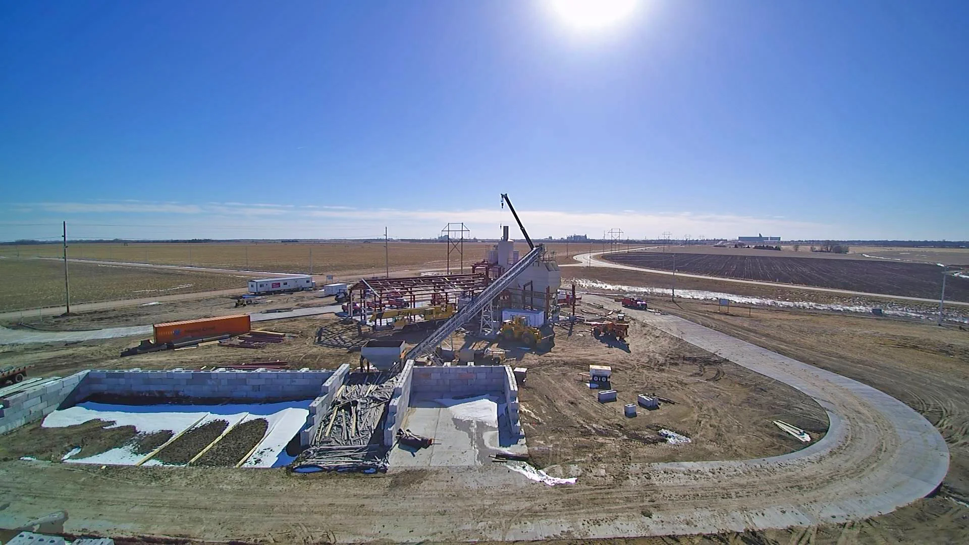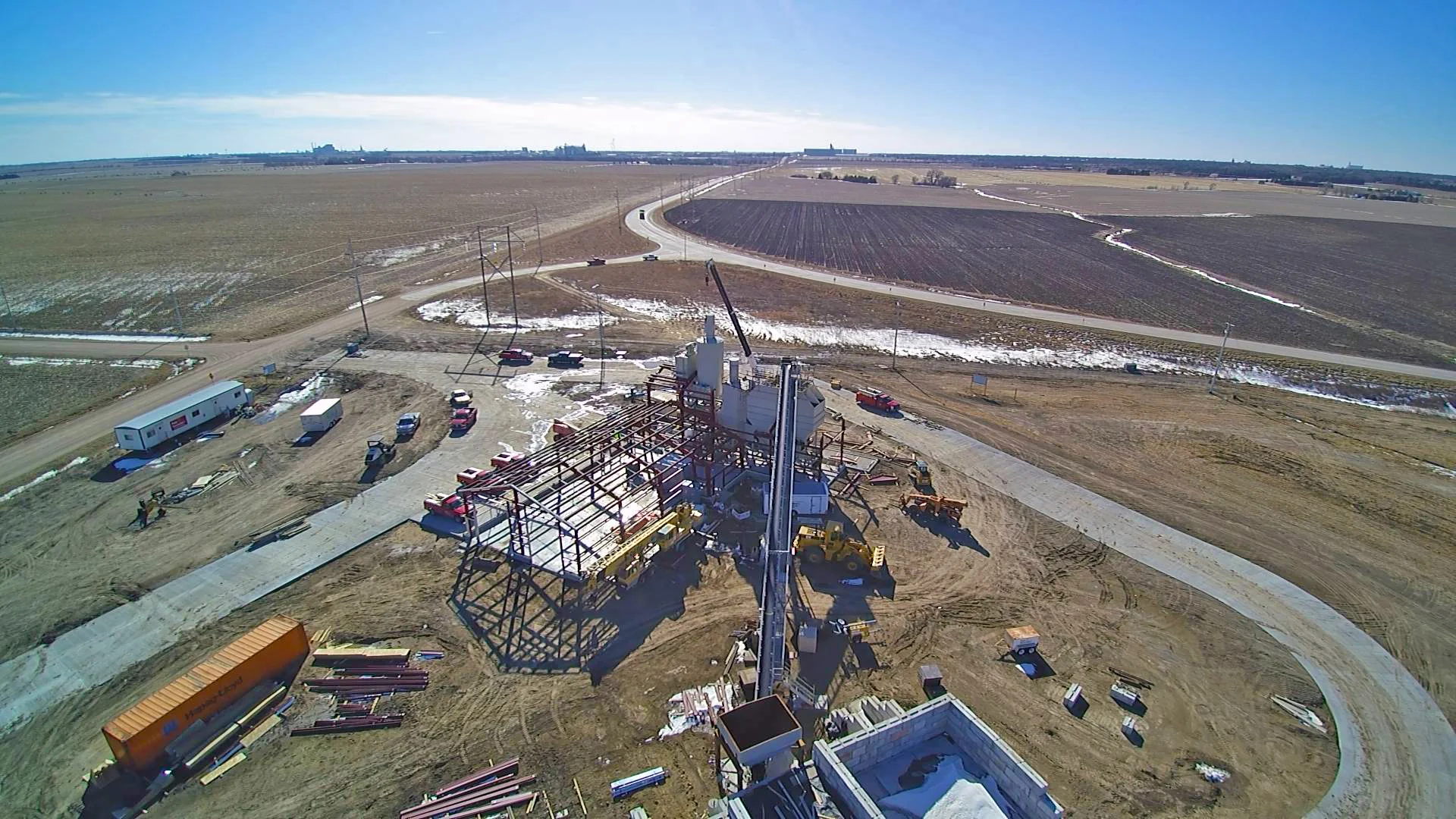 The new Gerhold plant just outside of Hastings, Neb., has been coming together over the last few months. Crews moved a portable plant from Fremont down to the Hastings site, where it is being installed permanently. The major concrete work was done before the winter weather really set in, so the focus has turned to getting the main building up.